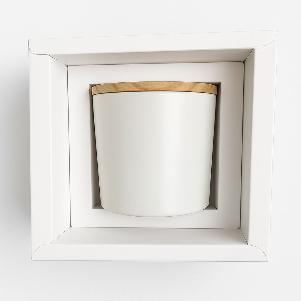Caixa borda larga para velas aromáticas com berço interno para copo de Wisky.