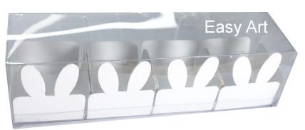 Caixinha para 04 brigadeiros ou docinhos em peça única + 04 forminhas modelo coelhinho.