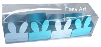 Caixinha para 04 brigadeiros ou docinhos em peça única + 04 forminhas modelo coelhinho.