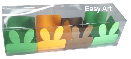 Caixinha para 04 brigadeiros ou docinhos em peça única + 04 forminhas modelo coelhinho.