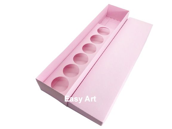 Esse modelo de embalagem comporta perfeitamente 6 brigadeiros ou doces de até 25g e também um lindo botão de rosa.