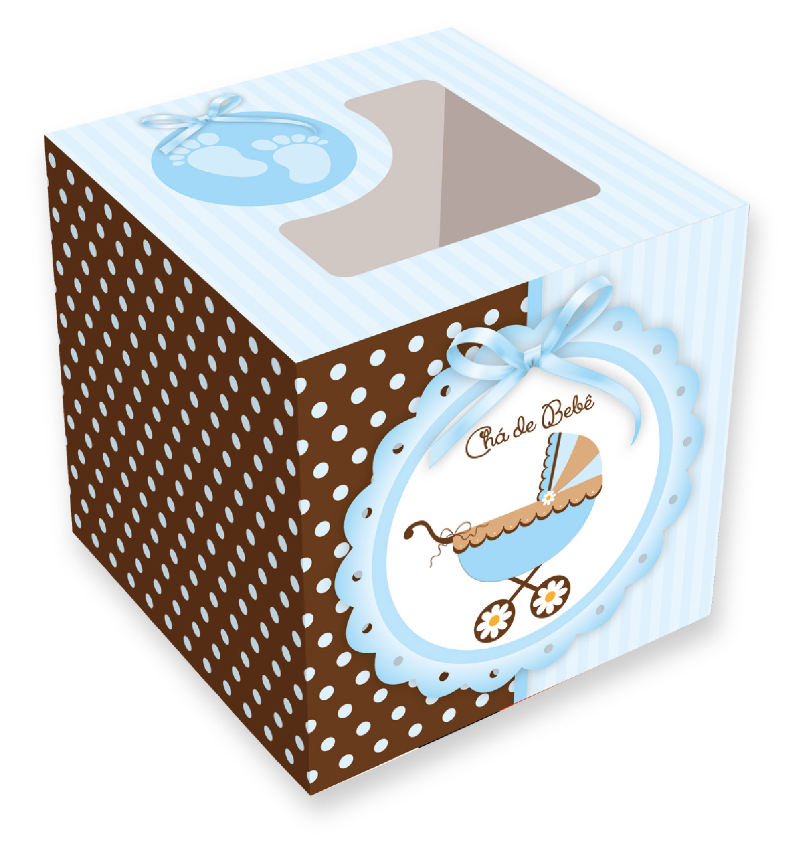 Ofereça como lembrança do seu chá de bebê essa linda caixinha para um mini cupcake. Em cores delicadas, confere beleza e requinte à sua festa.