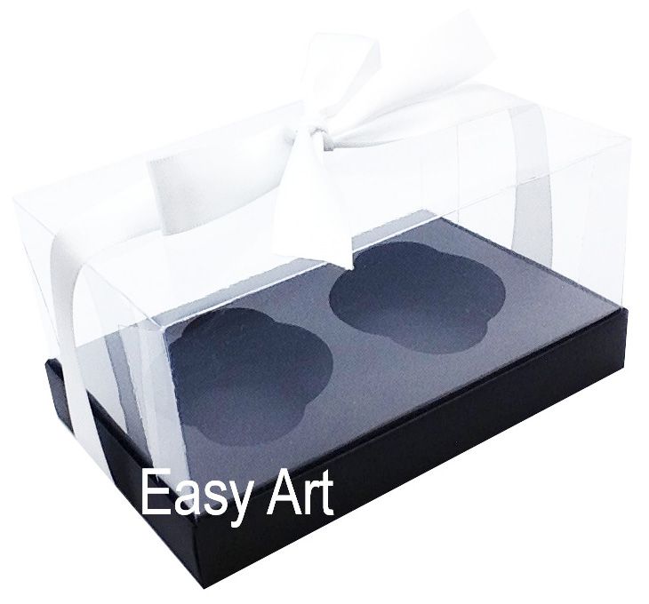 Caixa especial com berço interno para dois cupcakes. Ideal para aniversários, casamentos, festas, e ocasiões especiais.