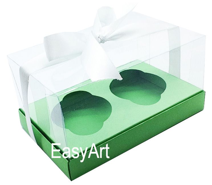 Caixa especial com berço interno para dois cupcakes. Ideal para aniversários, casamentos, festas, e ocasiões especiais.