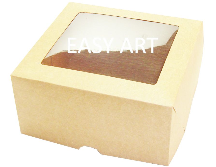 Caixa para 4 cupcakes com berço interno e visor na tampa.