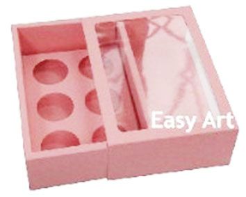 Caixa para 6 brigadeiros gourmet com berço e visor na tampa,