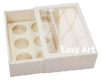 Caixa para 6 brigadeiros gourmet com berço e visor na tampa,