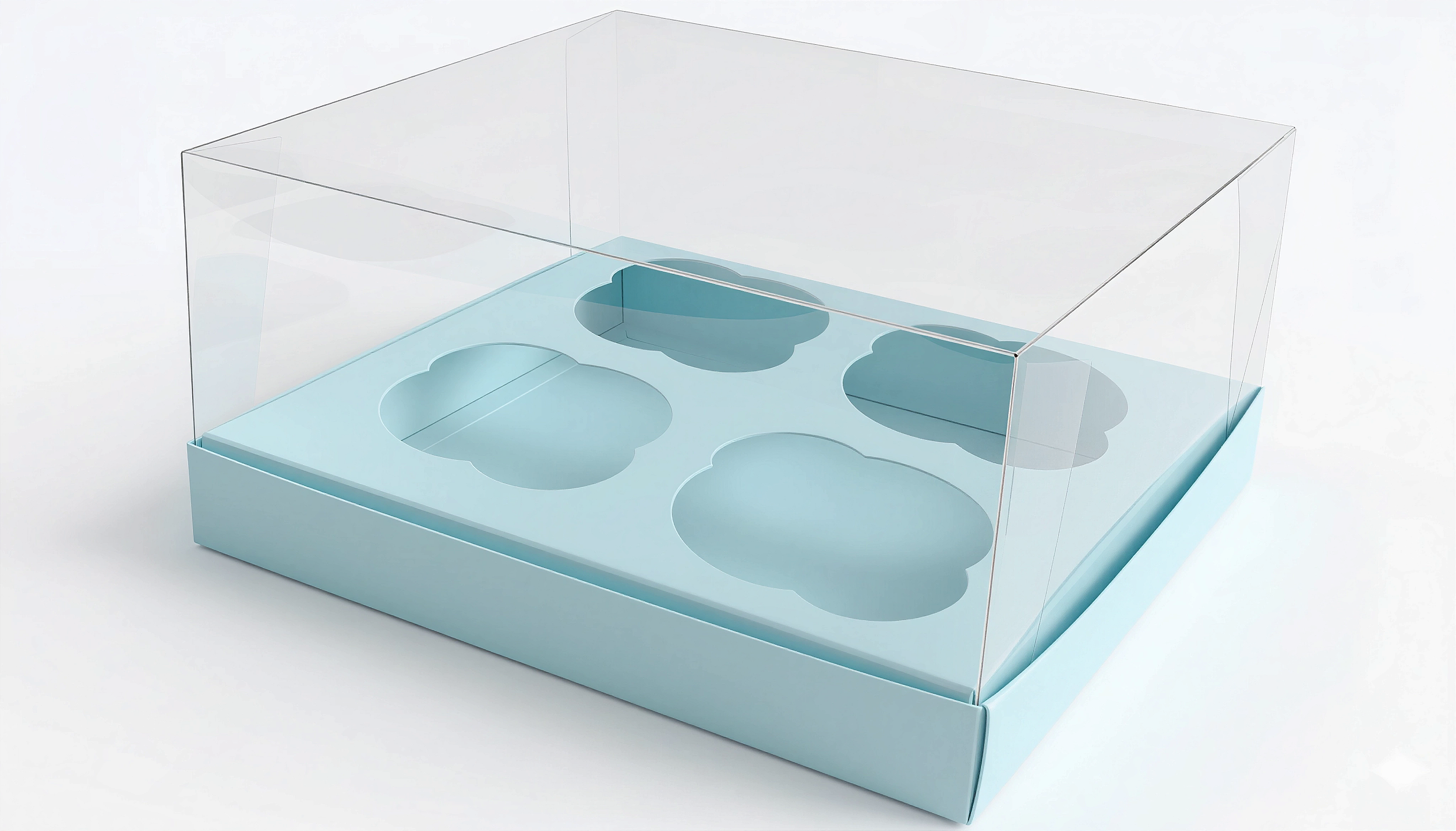 Caixa especial com berço interno para 4 cupcakes. Ideal para aniversários, casamentos, festas, e ocasiões especiais.