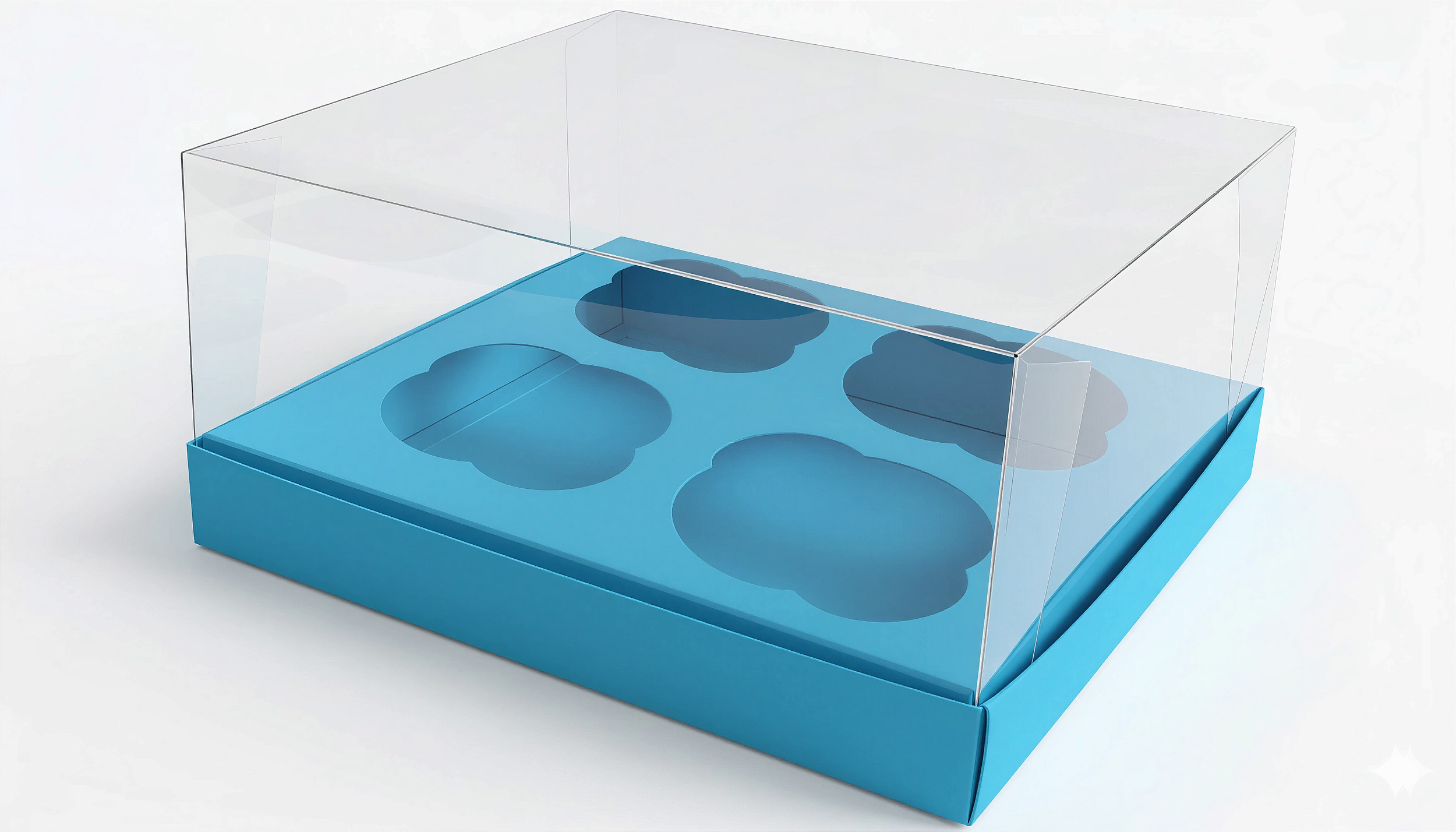 Caixa especial com berço interno para 4 cupcakes. Ideal para aniversïários, casamentos, festas, e ocasiões especiais.