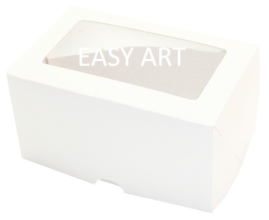 Caixa para 2 cupcakes com berço interno e visor na tampa.