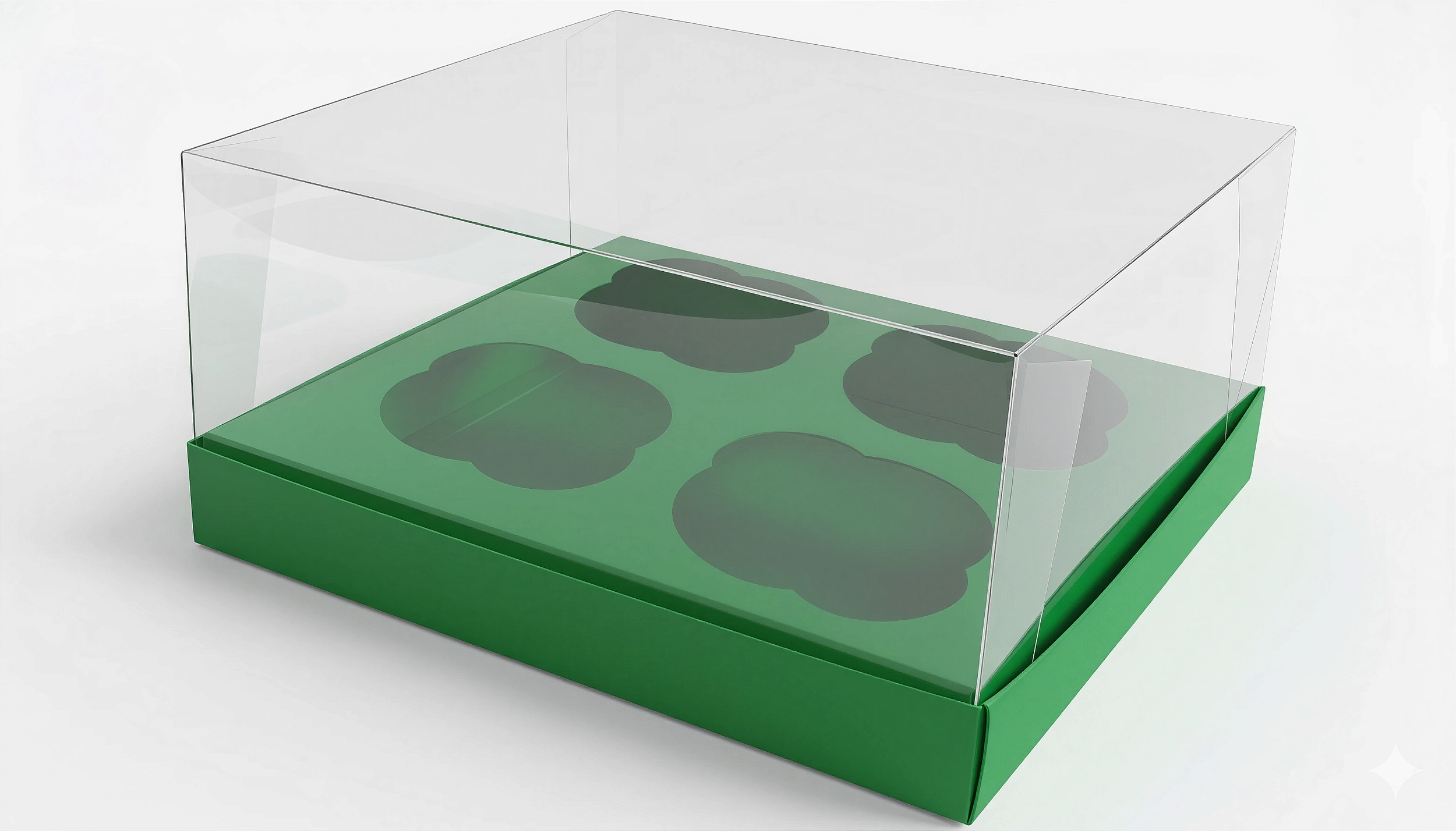 Caixa especial com berço interno para 4 cupcakes. Ideal para aniversários, casamentos, festas, e ocasiões especiais.