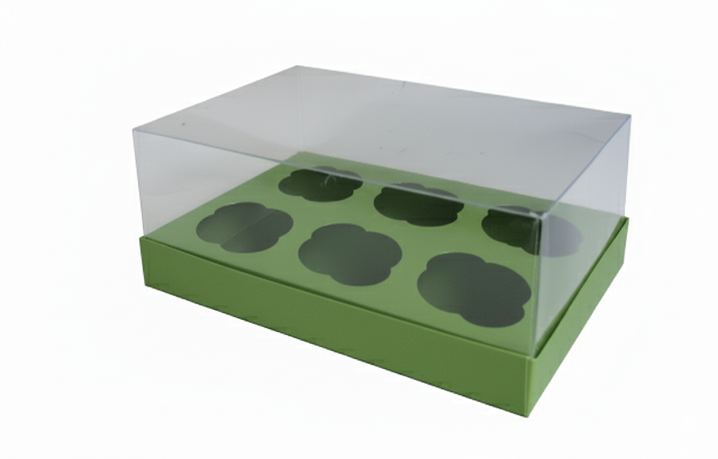 Caixa especial com berço interno para seis cupcakes. Ideal para aniversários, casamentos, festas, e ocasiões especiais.
