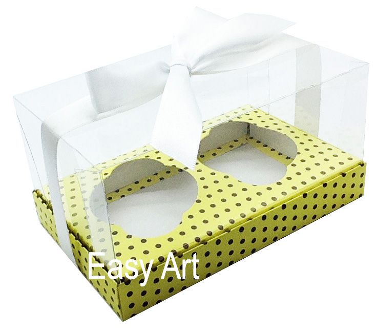 Caixa especial com berço interno para dois cupcakes. Ideal para aniversários, casamentos, festas, e ocasiões especiais.