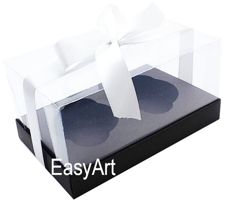 Caixa especial com berço interno para dois cupcakes. Ideal para aniversários, casamentos, festas, e ocasiões especiais.