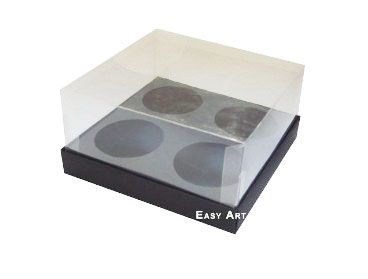 Caixa especial com berço interno para 4 mini cupcakes. Ideal para aniversários, casamentos, festas e ocasiões especiais.