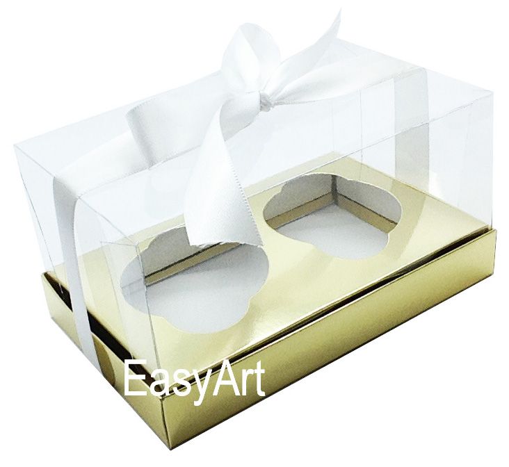 Caixa especial com berço interno para dois cupcakes. Ideal para aniversários, casamentos, festas, e ocasiões especiais.