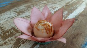 Formas para doces confeccionadas em tecido engomado e tingido.