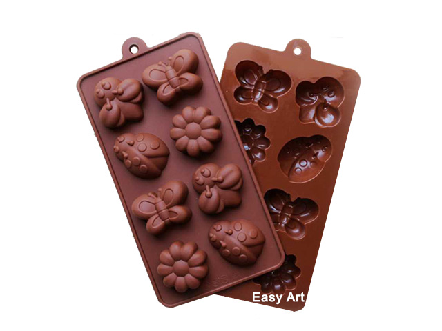 Forma flexível 100% silicone. Pode ser utilizada para chocolates, gelatina, bombons, sabonetes, gelo. Pode ser usada no congelador ou no forno. Faça deliciosos bombons em formato de flores, borboletas e joaninhas. Antiaderente é fácil de desenformar e não necessita ser untada. Vai ao forno e ao freezer.