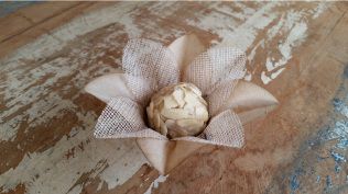 Formas para doces confeccionadas em tecido engomado e tingido.