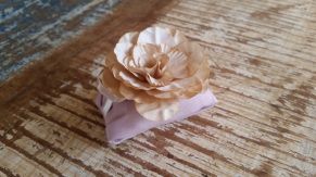 Mini flores para bem casados confeccionadas em tecido engomado e tingido.