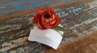 Mini flores para bem casados confeccionadas em tecido engomado e tingido.