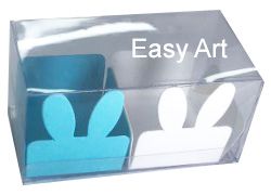 Caixinha para 02 brigadeiros ou docinhos em peça única + 02 forminhas modelo coelhinho.