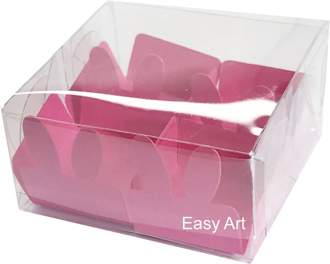 Caixinha para 4 brigadeiros, bombons, presentes e lembrancinhas com forminhas modelo coelhinho.